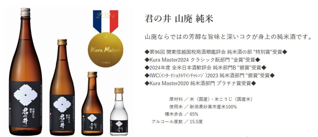 - 君の井(君の井酒造): 伝統の山廃仕込みによる、芳醇で深いコクが特徴。