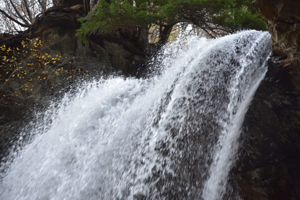 - 「光」の乱反射: 頭上を飛び越えていく水のカーテン。その隙間から漏れる日光が、空中の飛沫に反射して虹の断片を描き出します。