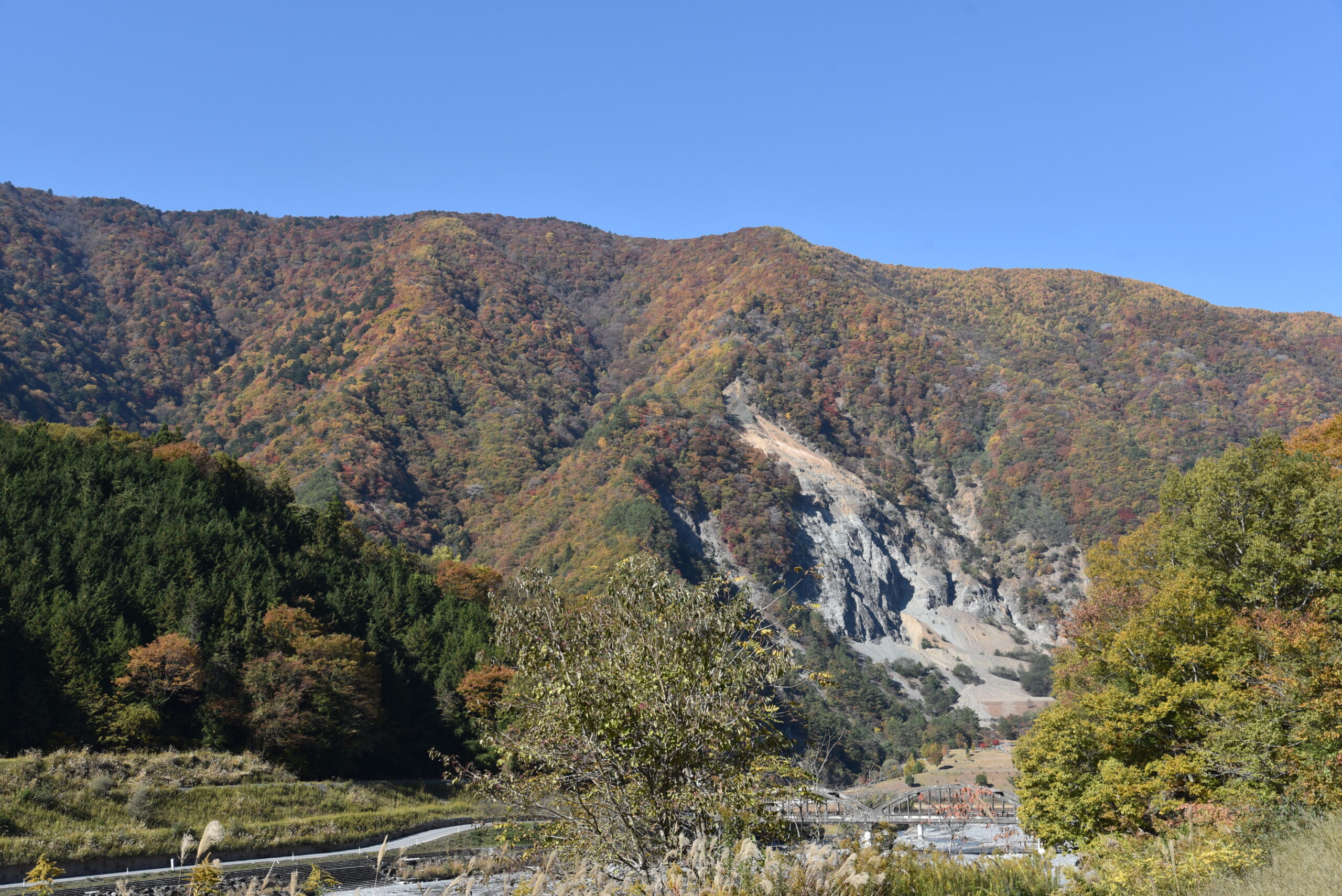- 地質的要因: 大西山は、日本最大の断層である中央構造線沿いに位置しており、崩壊した部分は特に破砕されやすい**鹿塩マイロナイト(変形した岩石)**で構成されていたことが、大規模崩壊の一因とされています。