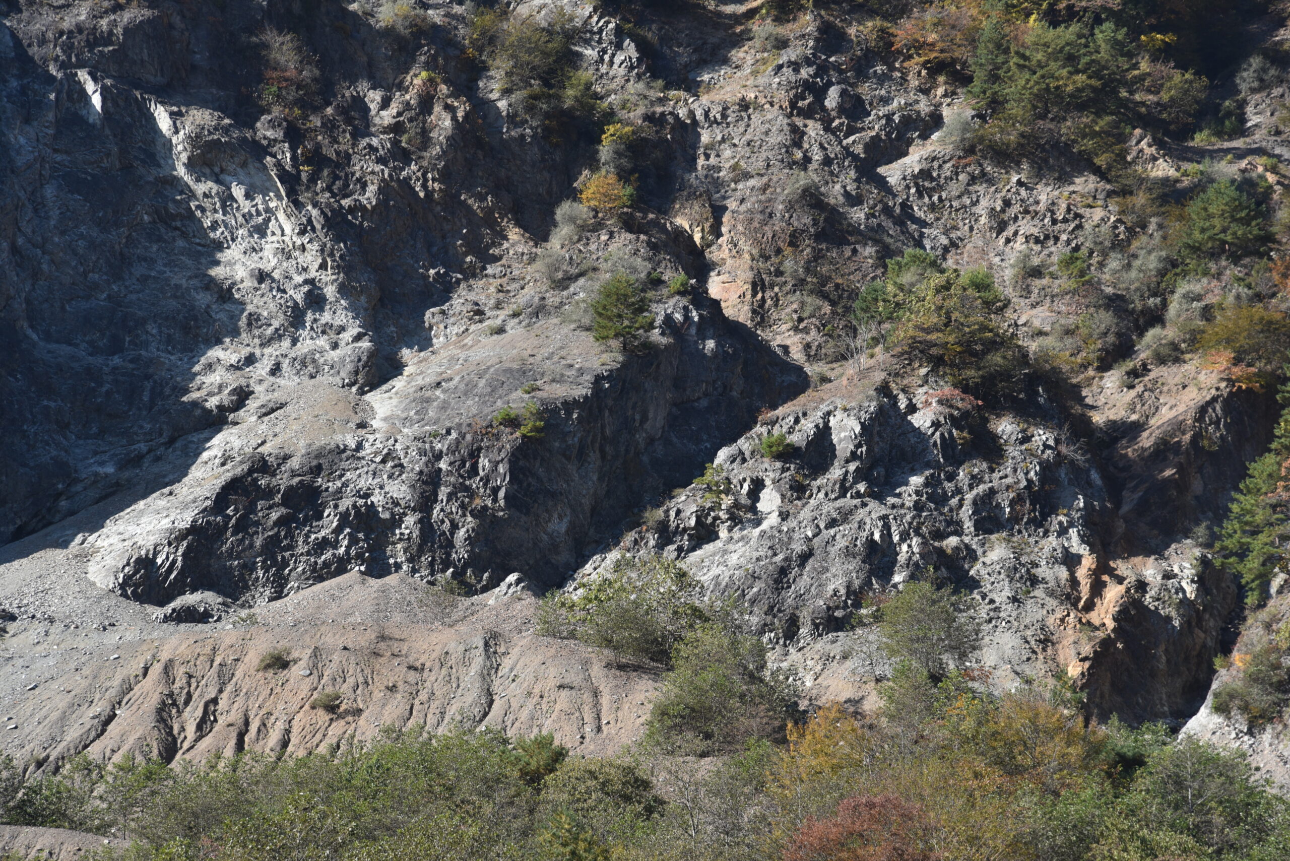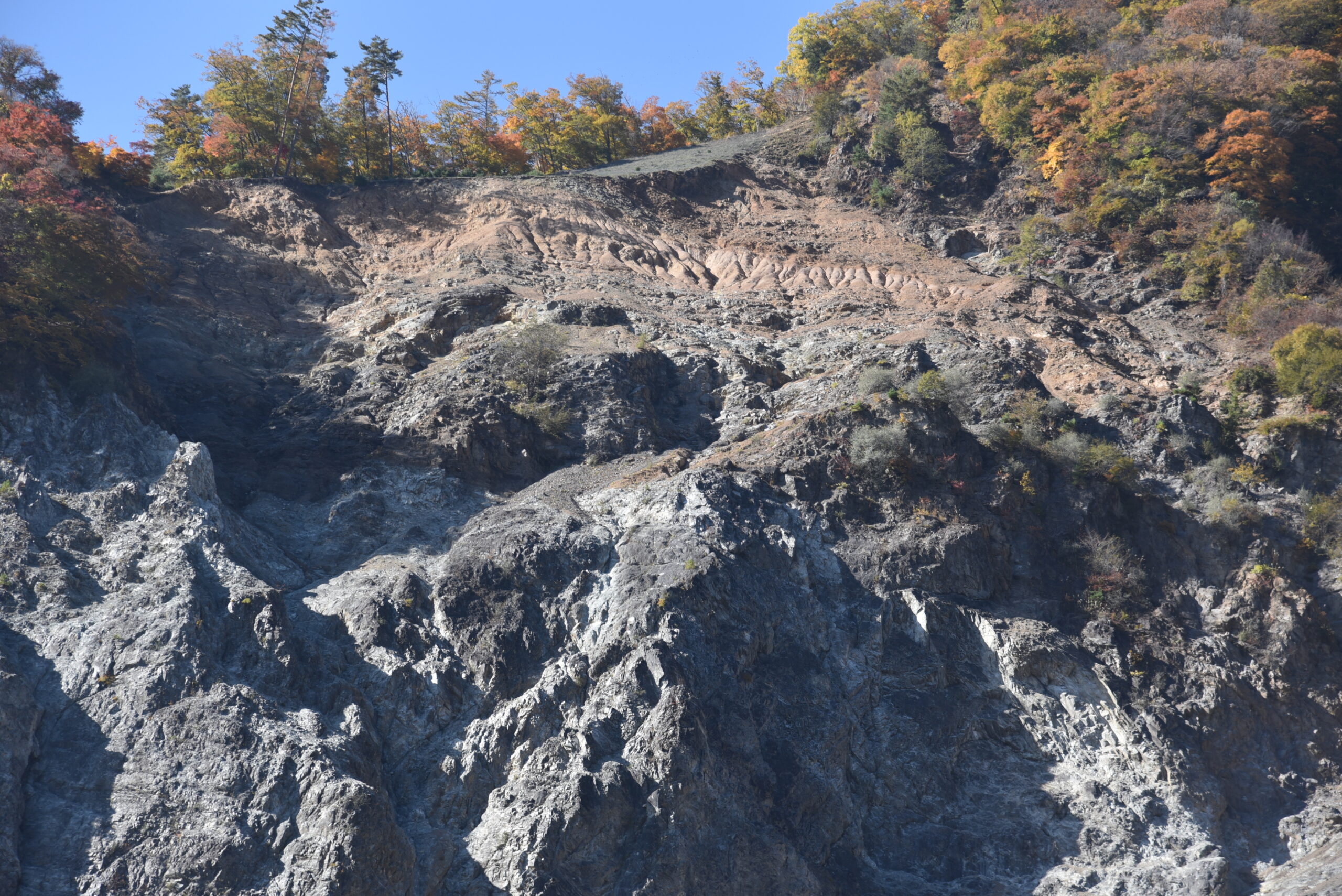 - 崩壊跡地の地質(マイロナイトなど)についての情報。