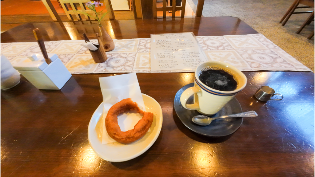 美味しく蕎麦は頂いたがメニューを最初見た時から気になっていたのが、水出しコーヒーと地粉ドーナッツ。